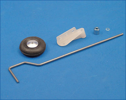 Stabile Ausführung, verkraftet selbst harte Landestöße unbeschadet. Komplett mit vorgebogenem Fahrwerksdraht, Konsole, Befestigungsteilen und Leicht-Rad.