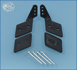 2 bruchfeste Ruderhörner für V-Leitwerke o.ä. mit Gegenplatte aus glasfaserverstärktem Nylon.