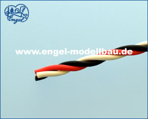 Verdrillte, hochflexible Servolitze mit Futaba Farbkodierung schwarz/rot/weiss.