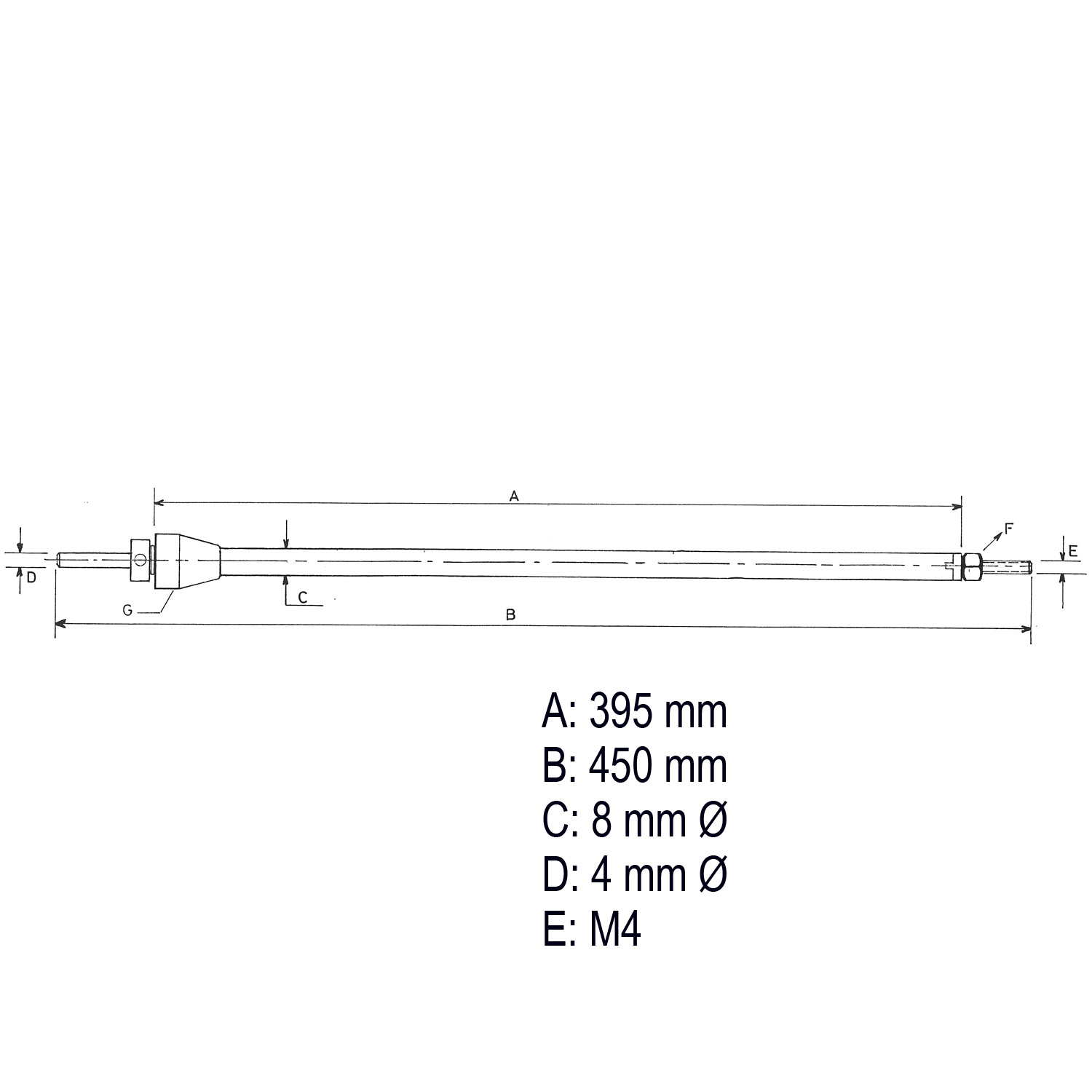 Eine Präzisionsmutter (F) sorgt für den perfekten Anschluss an die Schraube.