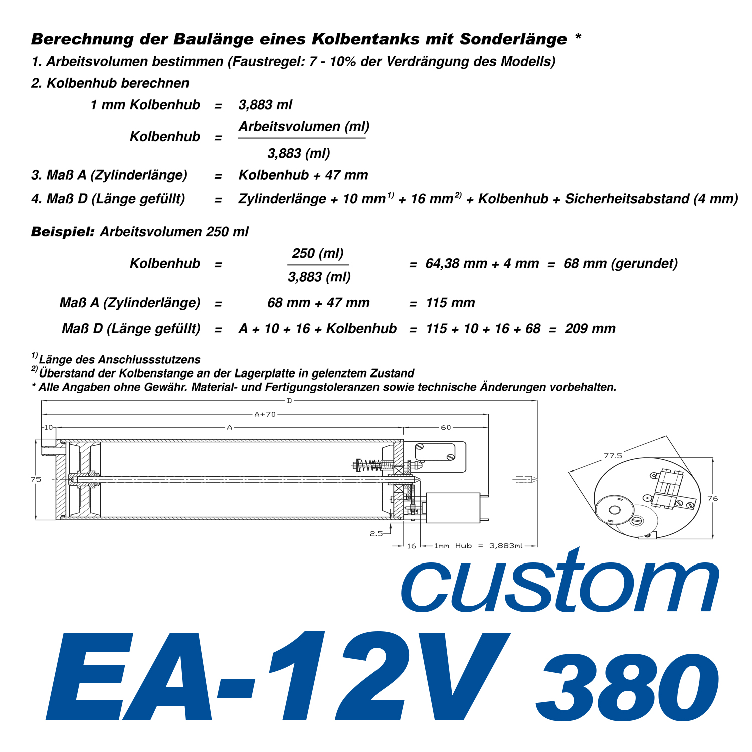 *Bitte beachten: der Zylinder-Aussendurchmesser beträgt immer 75 mm; lediglich die Länge des Tanks ist variabel.