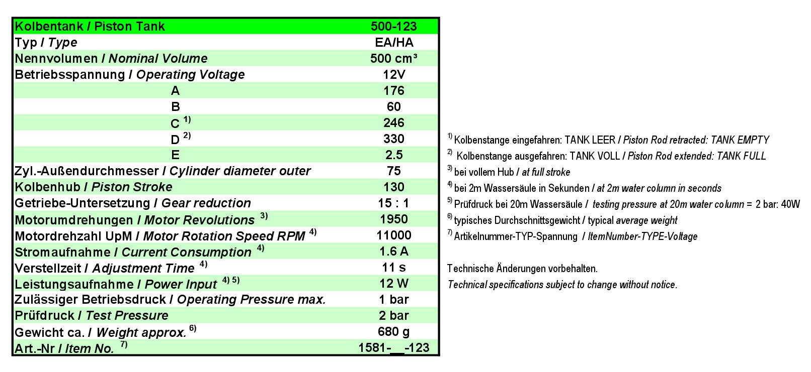 Kolbentank HA500-12V 380