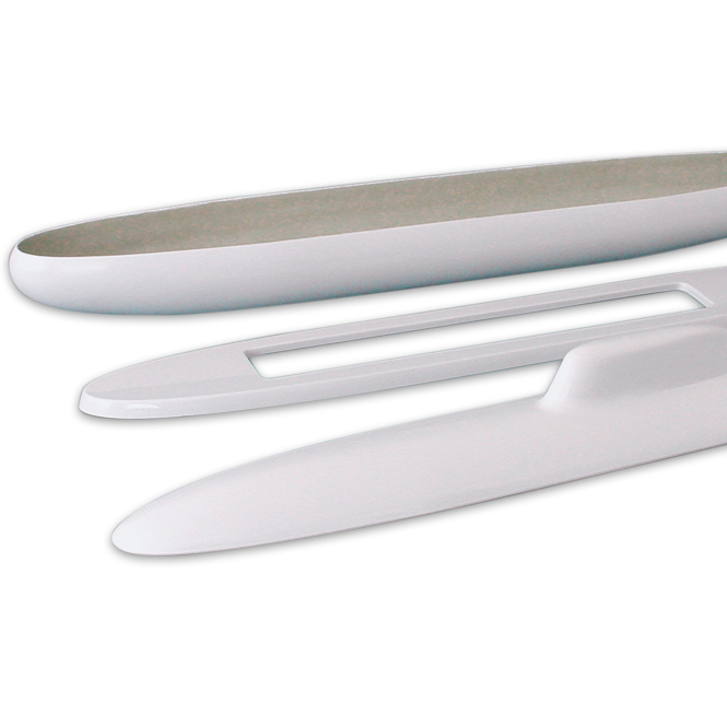 • 4-teilige Rumpfeinheit aus GfK mit Unterwasserschiff, Überwasserschiff, durch Flachstahl verstärktes Zwischendeck und Endschott