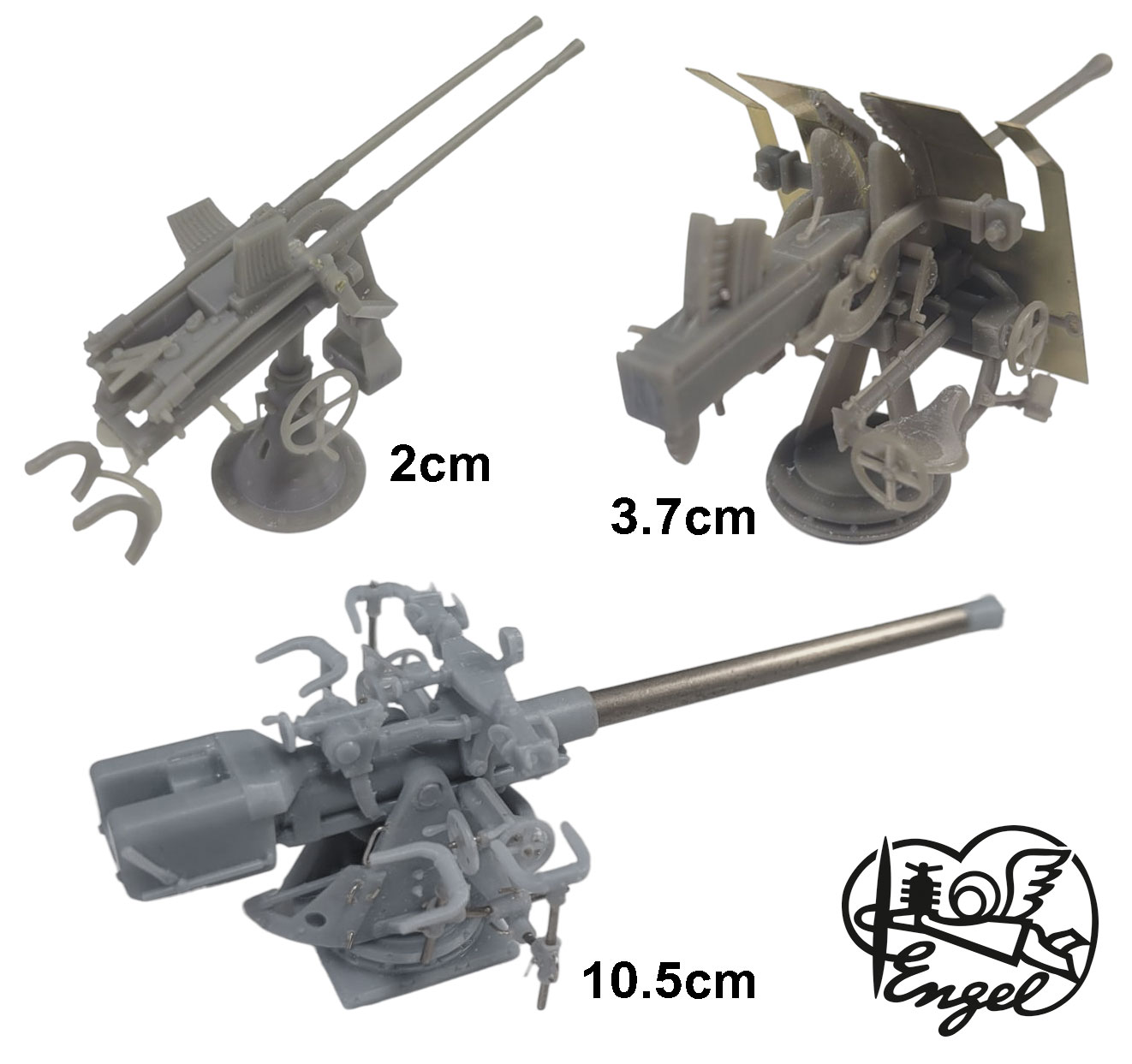 • Geschütz 10,5, Flak 3,7 und Zwillings-Flak 2 cm in höchster Detailtreue
